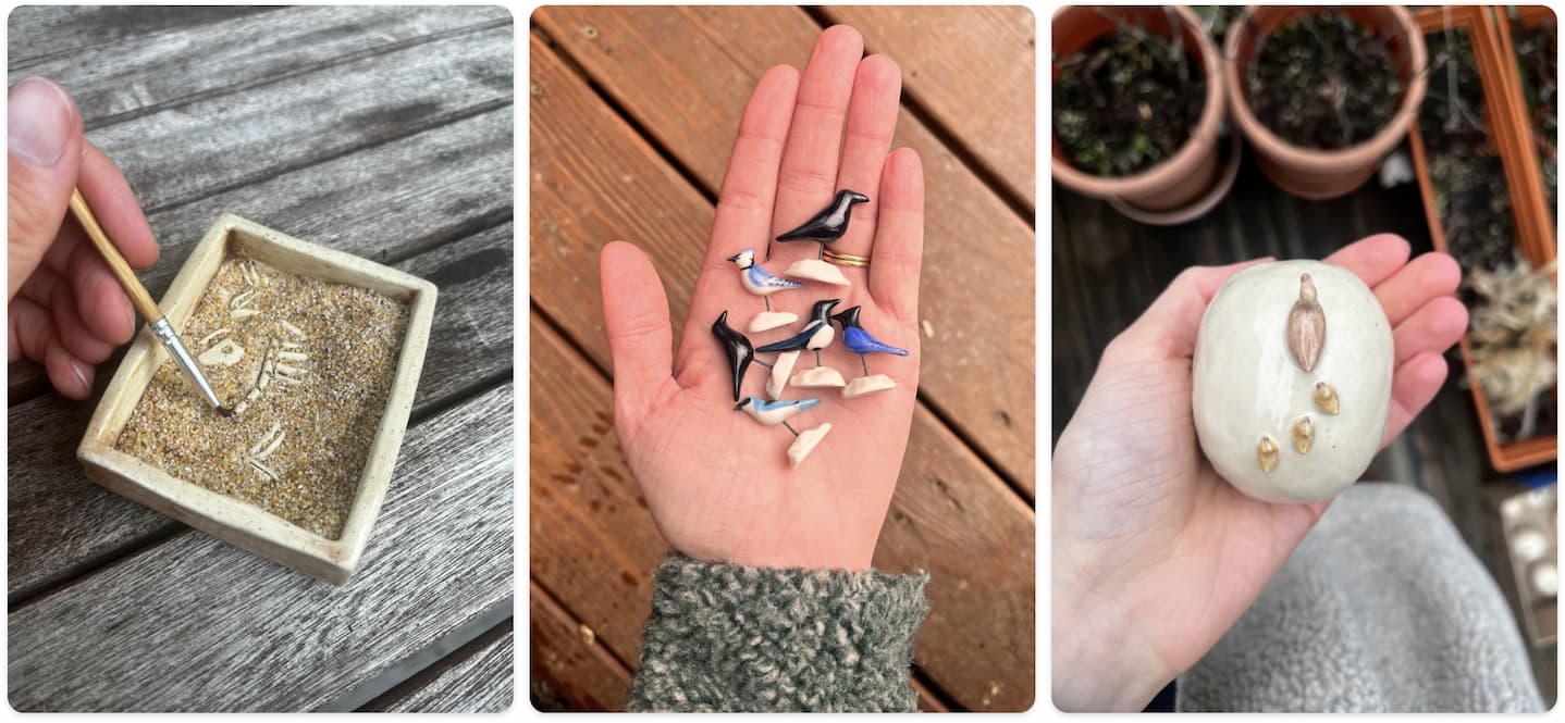 A: "Spending time outside always makes me itch to get back in the studio. So much of my work is inspired by the world around me - particularly birds. Going outside, even for 10 minutes, with a pair of binoculars and a healthy level of curiosity almost always brings ideas to mind. I carry a little notebook with me at all times to jot down ideas that I can later explore with clay when I’m back at the studio."