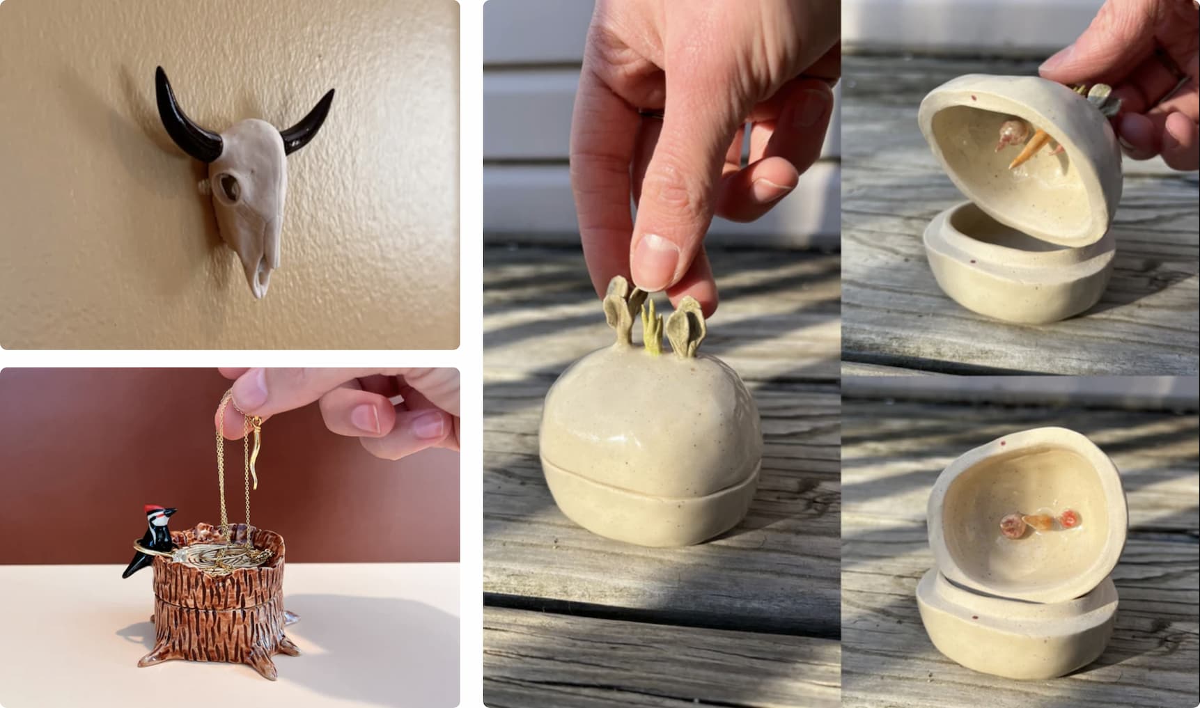 "I have always been a creative person, but fell in love with clay while taking an intro to ceramics class in my sophomore year at Skidmore College. Once I learned the way clay functions and the sort of “rules” that come with working in ceramics, I was hooked. I graduated with a degree in ceramics in 2020 and began selling my small-scale artworks in 2021 under the moniker Snail Girl Ceramics. What once started as a silly college nickname became a mentality. To be a Snail Girl is to embrace yourself in all hues, find home in the tiny worlds under rocks and in tide pools, and witness nature’s beauty at the Earth’s pace."