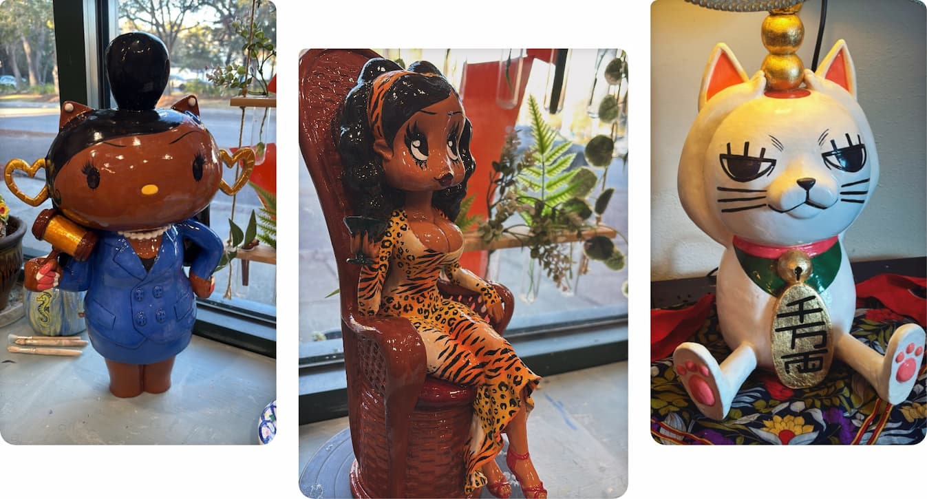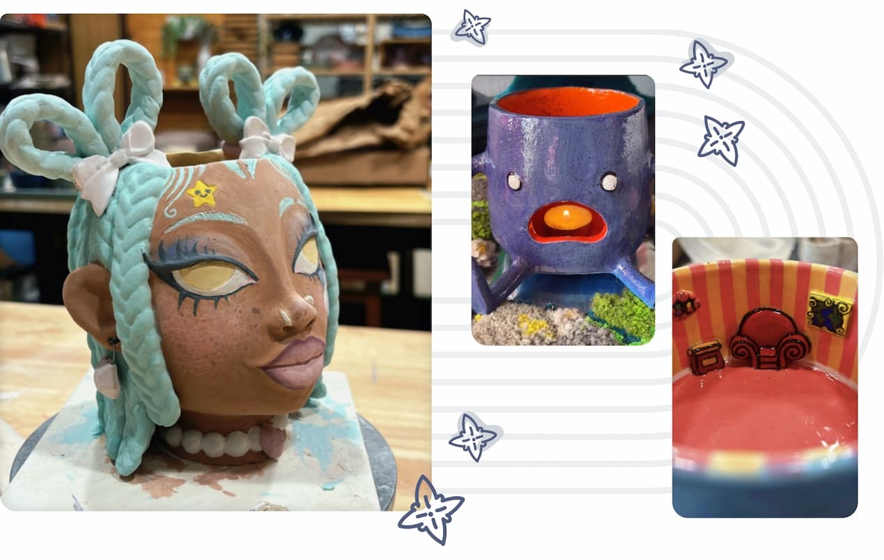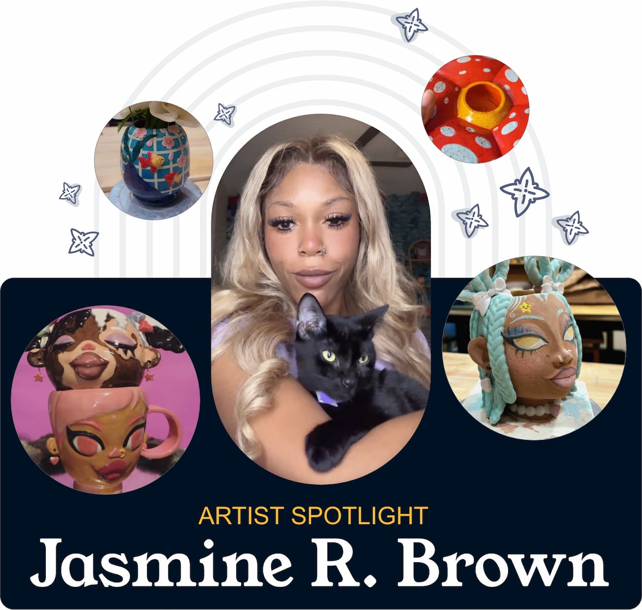 "Hi, my name is Jasmine R. Brown, and I am a self-taught ceramicist, mother of one, based out of North Charleston, South Carolina. I got my start in ceramics about two years ago when I took a class at the Art Place Studio in Mount Pleasant, and have been hand-building ever since."