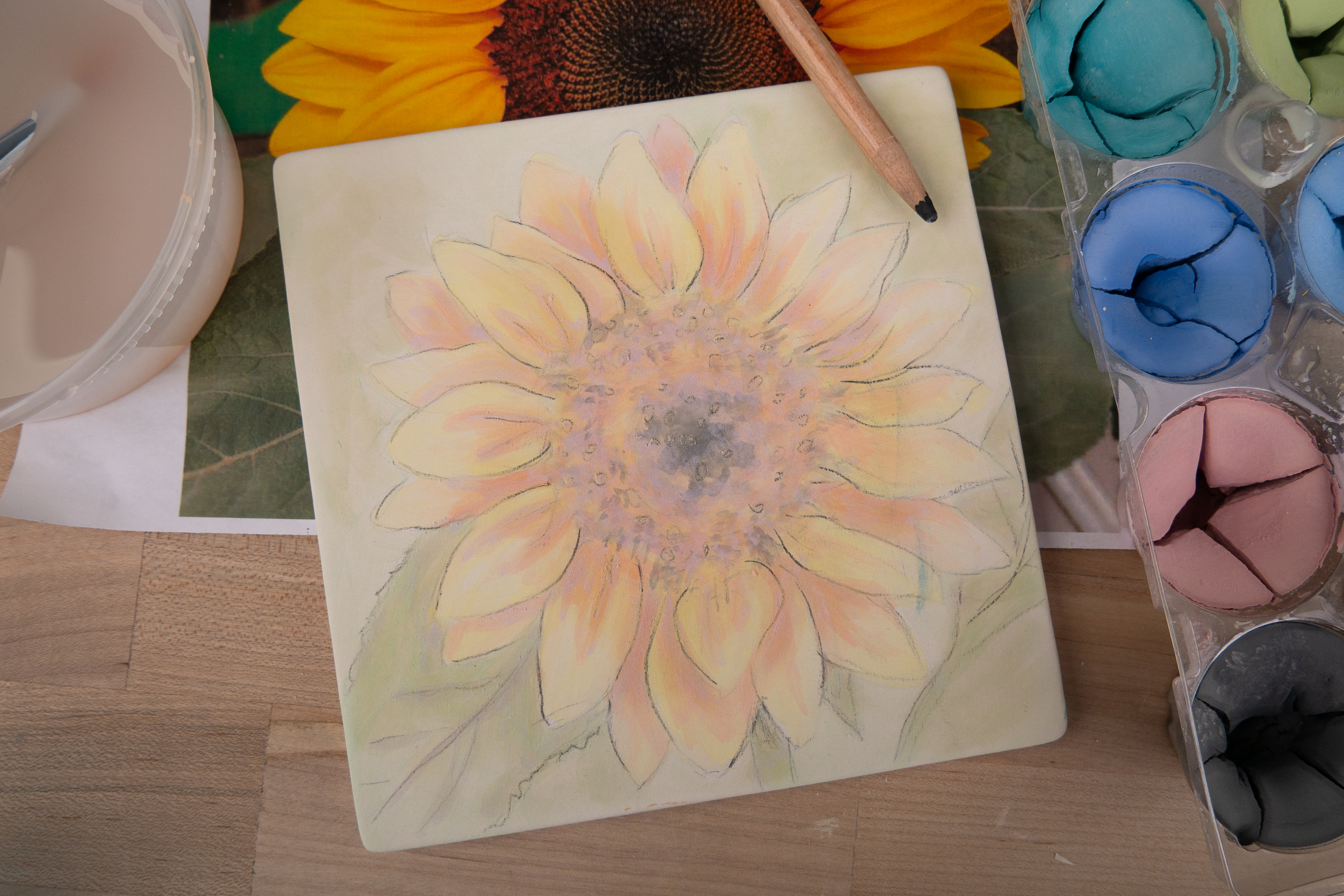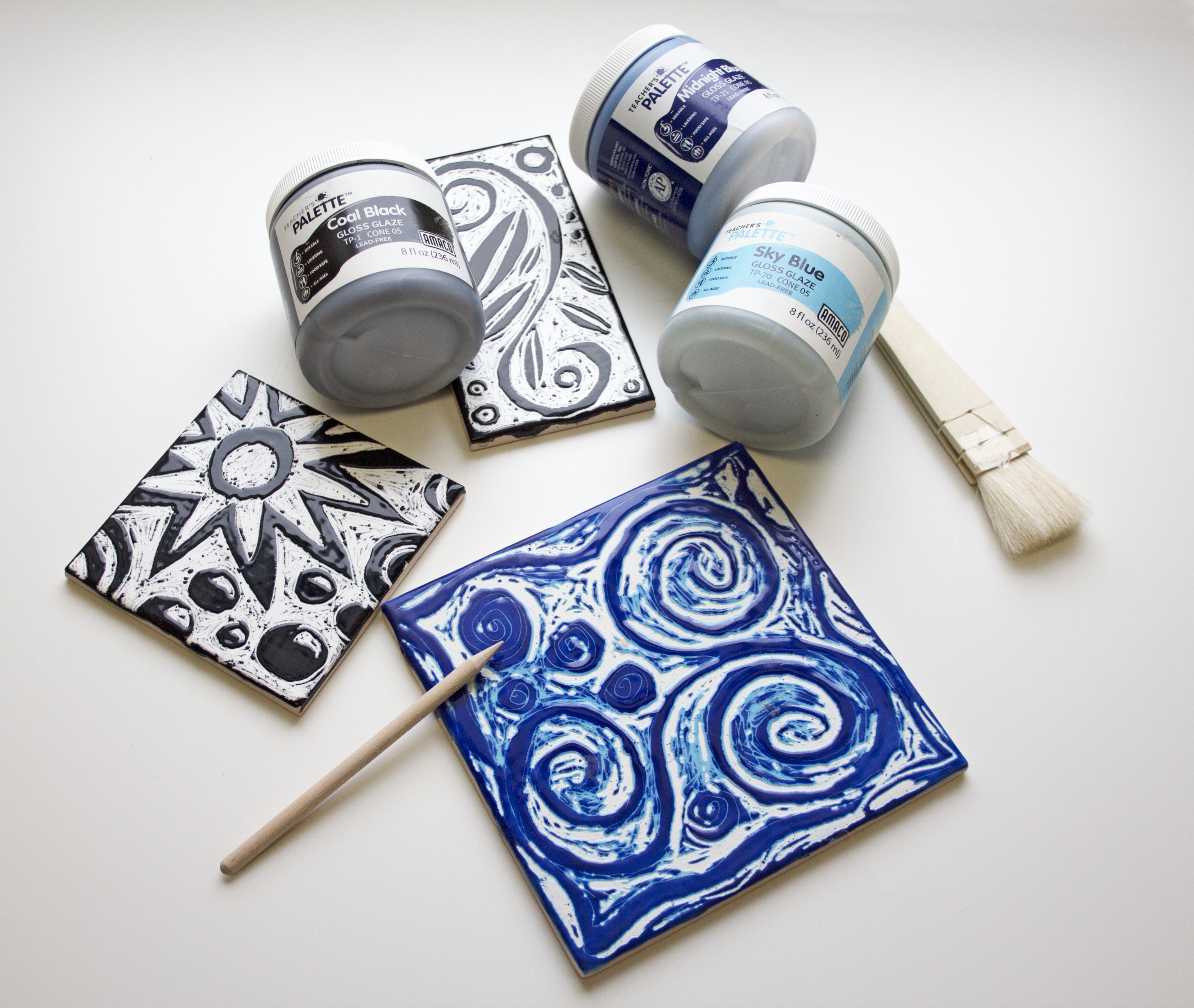 Teacher’s Palette glazes can also be used for a modified Sgraffito method on glazed commercial tiles. Use plain field tiles and apply Teacher’s Palette over the tile, then scratch through with a tool to create a design and fire to cone 05. Find the lesson plan here: https://amaco.com/resources/lesson-plans/scratching-the-surface-glaze-on-glaze-technique