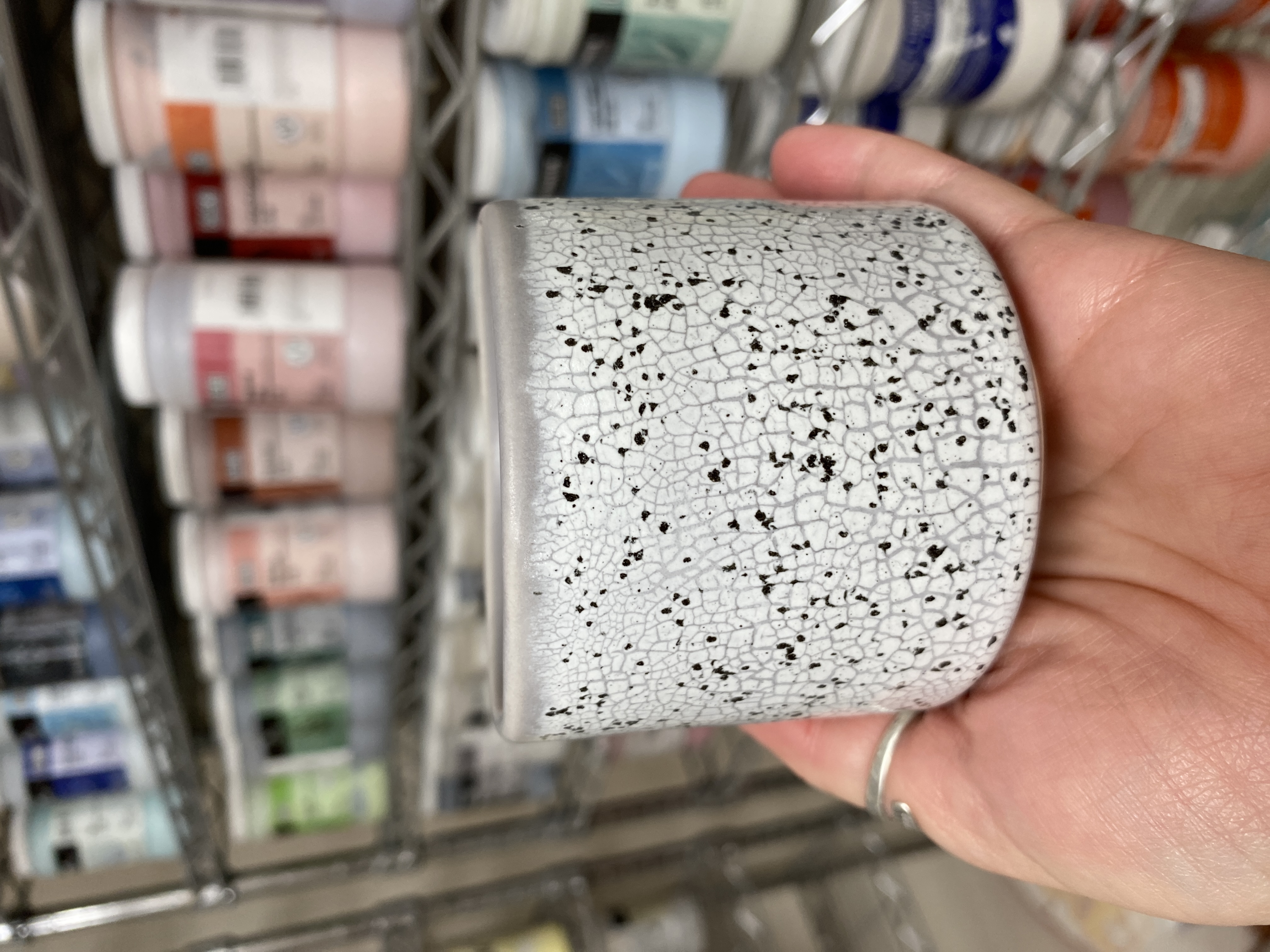 Buttery smooth Satin Matte meets the visual texture of Crawls, creating a visual texture reminiscent of polished stone. 2 coats CR-12 Speckled White Crawl over 2 coats SM-2 Stone. Cone 6, A-Mix White Stoneware.