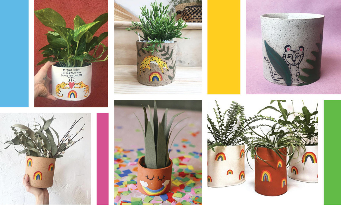 Whenever we take a scroll through Jarmél Reitz's Instagram, we can't help but crack a smile. After several years of trying to create work based on other people's ideas, Jarmél realized she could use ceramics as an outlet to express the ideas in her own head, and boy would we love to live in her world. It's a place full of smiling rainbows with clouds at each end, where alligators carry balloons, and where snakes and frogs can fall in love. Her work has been deservedly featured on several platforms (including the Urban Outfitters blog) and sets out to spread beauty and happiness. Jarmél's planters and other pieces are covered in baby rainbows, smiling jaguars, and an assortment of other cartoonized animals and personified objects. We love her whimsical approach to illustrative narratives and wish her the best of luck as she continues to add rainbows to the world.