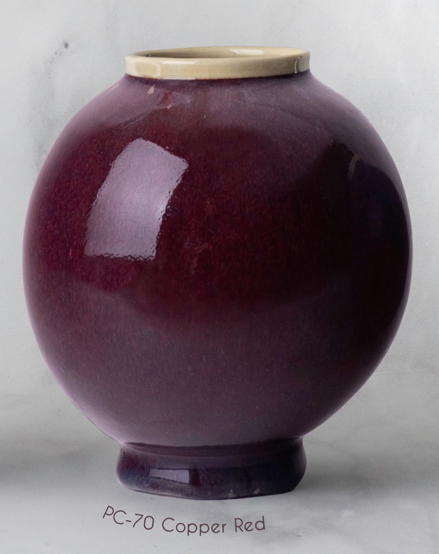 When a copper glaze is fired in a reduction atmosphere, depriving the firing of oxygen, the normally green copper oxide turns a deep oxblood red. Reduction firing normally cannot be done in electric kilns, but the formulation of PC-70 Copper Red creates a reduction atmosphere inside the glaze, creating a true reduction copper red glaze without the need for a reduction kiln firing.