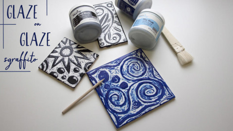 Following your penciled design, use a stylus to etch the unfired glaze. Make sure to scratch through to revel the fired glaze surface below.