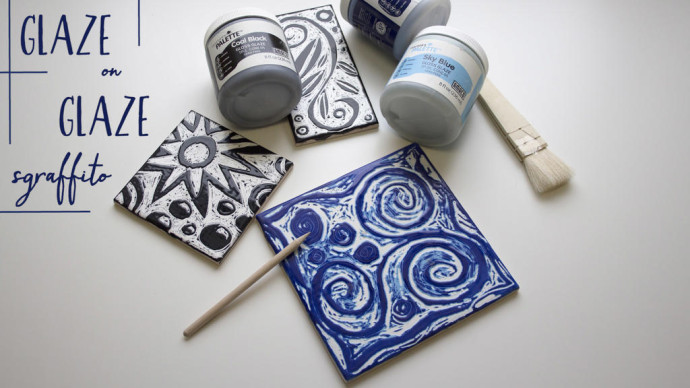 Create a contrasting design by scratching away at the rest of the glaze. Student can create simple line drawings or play with positive a negative space for interesting results.