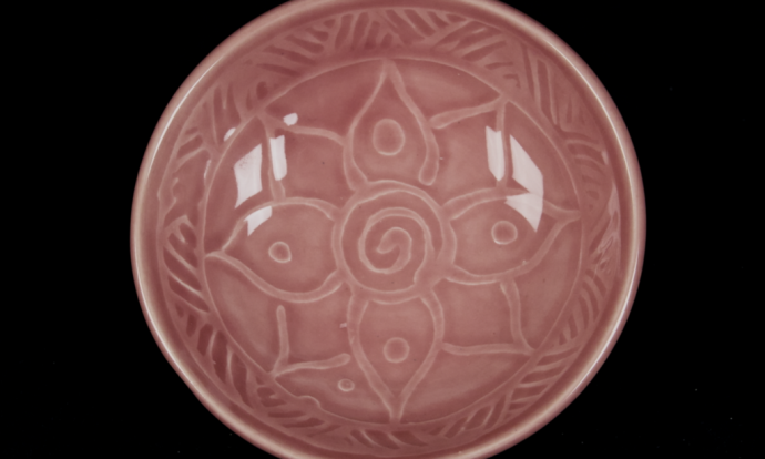 The dish shown below was made with A-Mix, 11M, Clay. It was fired to Cone 5 with Celadon 53, Weeping Plum.